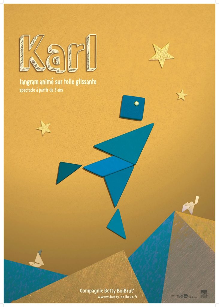Karl, personnage composé de petites formes géométriques (tangram), nous invite à